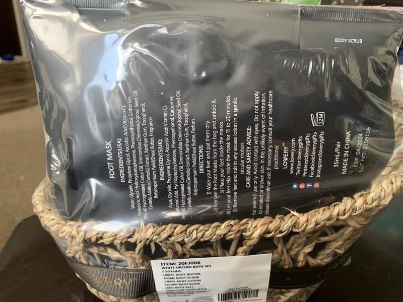 This gift set is absolutely lovely! The orchid scent is very light and intriguing. The hand & foot masks are very hydrating and softening for the toughest skin on our bodies. The body scrub leaves your body silky smooth. I will be gifting many Lovery giftsets in the future!