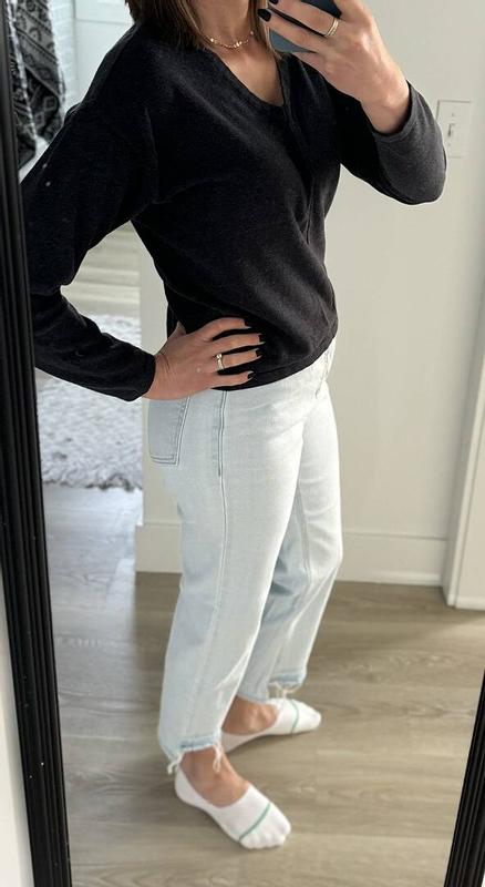 Fits perfect, so soft and comfortable. My new fav sweater to wear