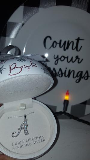 Ornament Box with Cubic Zirconia Initial 18" Pendant Necklace in Sterling Silver (Also in Gold-Plated Sterling Silver)