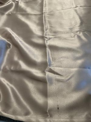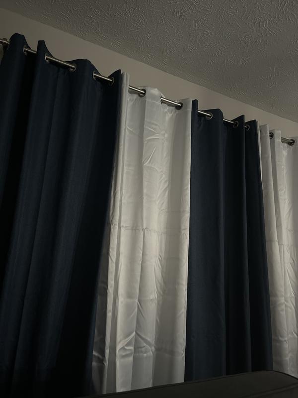 Very heavy curtains. Lots of folds and wrinkles in the colored curtain side. Some loose threads. Blush color is very dark, dull color not as bright and cheerful (and attractive) as pictured online. I was extremely disappointed in these curtains and am going to return them.