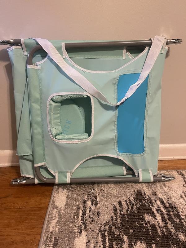 This is the perfect chase lounger for summertime. Easy to carry with an attached strap handle it could be taken to the beach or the pool or just to have to lay out in your yard. It’s such a pretty color, blue, and so easy to open and use. I love the different positions that I can use it in whether I’m sitting or if I want to lay flat on my stomach. It has the attached pillow for my head, but that also lifts up and you’re able to put your face down in a cushion with the hole to breathe. This makes it so unique. It’s easy to clean and also doesn’t take up much room to store. Sturdy and great quality holds up my whole weight.