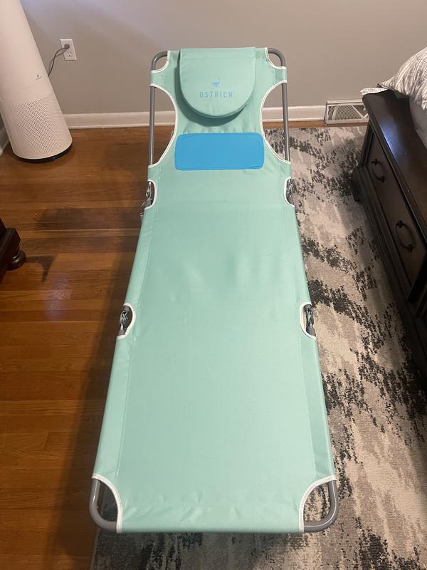 I received this Deltess Corp. - Ostrich Chaise Lounge Folding Sunbathing Poolside Comfort Beach Chair, Teal from TryIt in exchange for my review, and I am SO thankful! It is an amazingly comfortable folding lounger in a gorgeous teal color. There is a carry strap to throw it on your shoulder, a face hole for laying on your stomach, arm holes for better comfort AND a panel that flexes to accommodate larger breasts. It's simply awesome! Get one, you won't regret it!