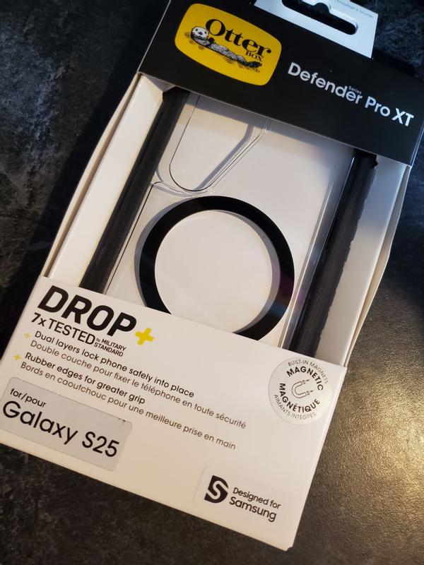 The OtterBox Defender Series Pro XT case for the Samsung Galaxy S25 Ultra is designed to provide robust protection while maintaining a slimmer profile compared to traditional rugged cases.