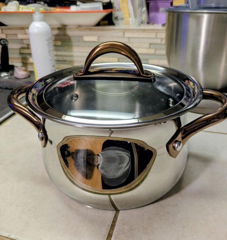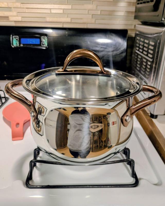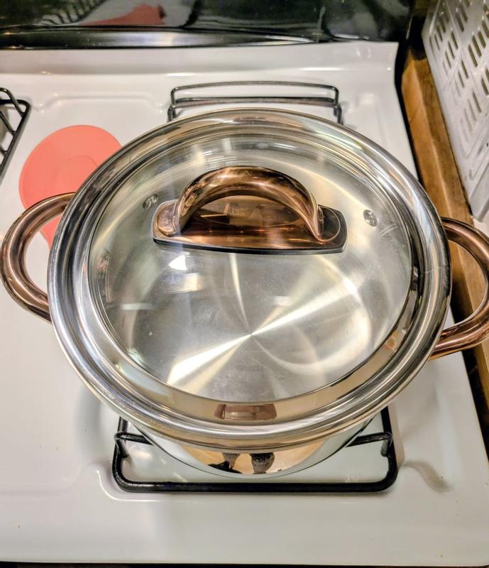 This pot is not just nice to look at—it actually performs well. The stainless steel body heats evenly, and I haven’t had issues with hot spots or food sticking when used properly. The glass lid is sturdy and lets you keep an eye on what’s cooking without constantly lifting it, which helps with heat control. It has a good weight to it—not flimsy, but not so heavy that it’s a pain to use. It also cleans up easily and still looks brand new after multiple uses. If you want cookware that looks great on the stove and does its job reliably, this is a solid choice. Overall it’s awesome and I’m obsessed with it and definitely recommend it to anyone.
