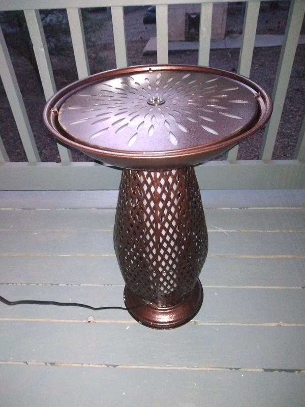 This electric fountain with LED lights will be the focal point on our deck. It took about 15 minutes to assemble. The sound of the bubbles are soothing and the bronze color is stunning. The light shows through all the cutouts. It's easy to fill and the height of the water can be adjusted. We can't wait til it gets warmer so we can sit on our deck and really enjoy it!