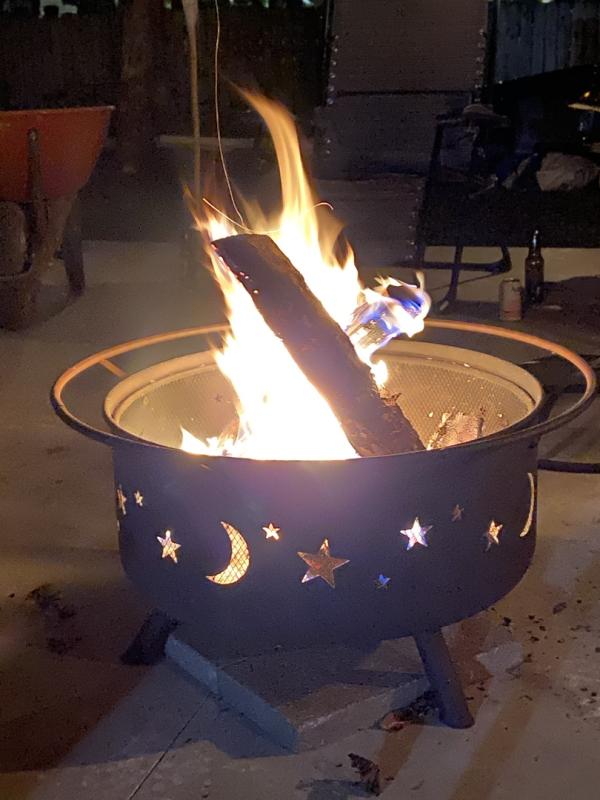 I really like this fire pit for use in my small backyard with room for 4 chairs around it. I love the moon and star decorations and appreciate how portable it is. I wish the weave on the screen was a bit tighter because sparks still fly out through the screen. Highly recommend!