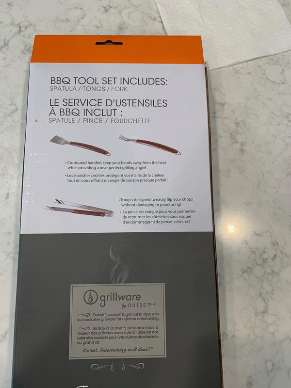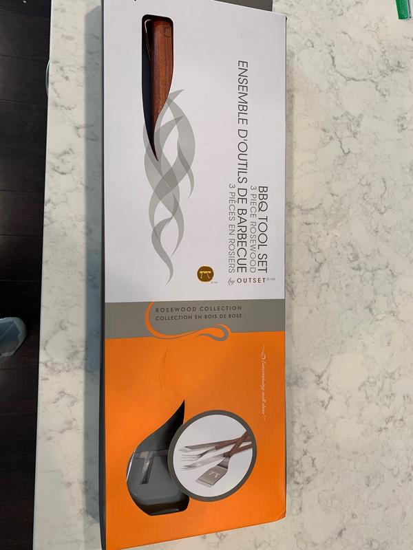 Let me first say, this Outset Rosewood 3 Piece BBQ Tool Set is just beautiful! You get all the tools you need for grilling in this one set. The quality of these products is fantastic!! Really heavy duty metal and the rosewood handles are just gorgeous. We love to grill and we/ve had our other BBQ tools for a long time, so these are a great replacement. This would also make lovely gift for someone who loves to cook. The presentation is perfect for just a simple bow with a card! I would definitely recommend this set.