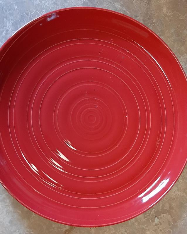 I absolutely love my new Over and Back 16pc Dinnerware Set in Red by Weyand, the concentric circle ring design on the dinnerware is very beautiful. The color and design compliments my kitchen décor and the tablescape place setting look is unique and modern which adds to the dining room ambiance as well as the meal presentation. They are made with durable ceramic and have a glazed look to them, and the dinnerware set comes in 3 different colors which can be mixed & matched to create an eccentric look. The set includes four 11” Dinner plate, four 8” Salad plates, four 6 ¾” Bowls, and four 6 ¾” Mugs which are made of stoneware and are dishwasher/microwave safe and are safe for the oven up to 350 degrees F. Since I have this set in Red, I will be using these for the upcoming holiday gatherings and would highly recommend the set to others. My favorite in this set are the mugs because they are slightly larger than your regular coffee mug, the entire set is modern, elegant, and casual in style at an affordable price.