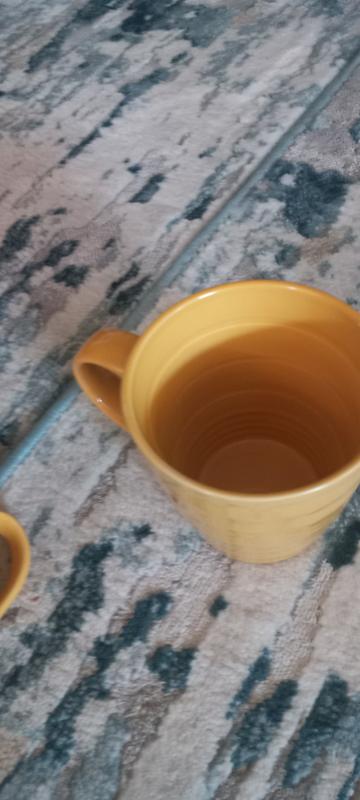 This 4 piece mug set is very nice. The mugs are very large and are perfect for those big cups of hot cocoa on a cold day. They are very well crafted and will definitely wear well. The yellow color is bright and pretty. I really like these mugs.