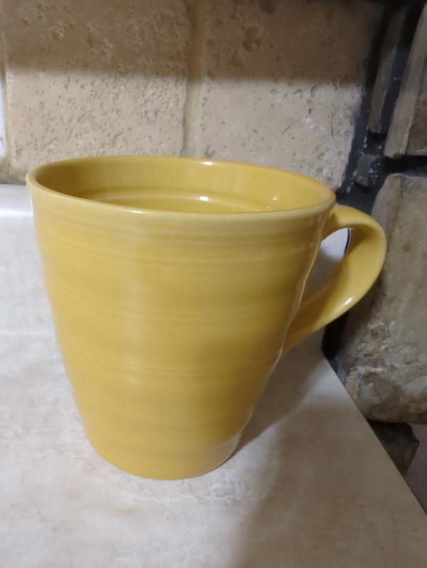 I'm really happy with these mugs! They are great quality and well made. They are a beautiful sunny yellow color. They go very well with the rest of my dishes and dinnerware. I highly recommend these mugs!