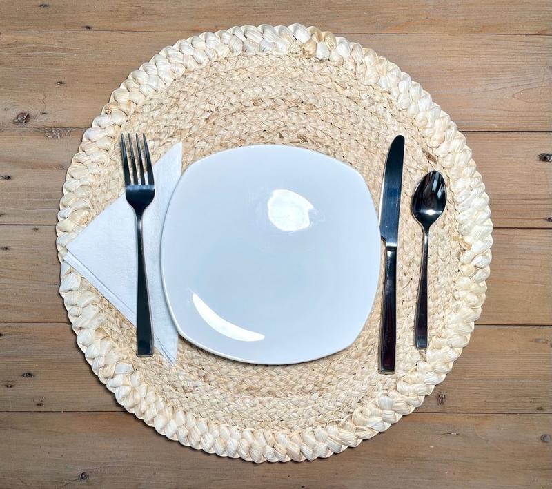 These placemats are beautiful and elegant, and make staying in for dinner feel special. They are fancy enough for guests, and low key enough for daily use. I was also surprised how easy they are to clean with just a damp cloth. Shake out the crumbs, give it a quick wipe, and good for next use! Natural fiber in placemats are durable, and the construction is pretty sturdy with the threads woven through them. These should last a good long time. Finally, the placemats are quite large, ideal for large dinner, but not too big to take over the dable. You don’t realize they are their cow but they elevate the whole entire experience!