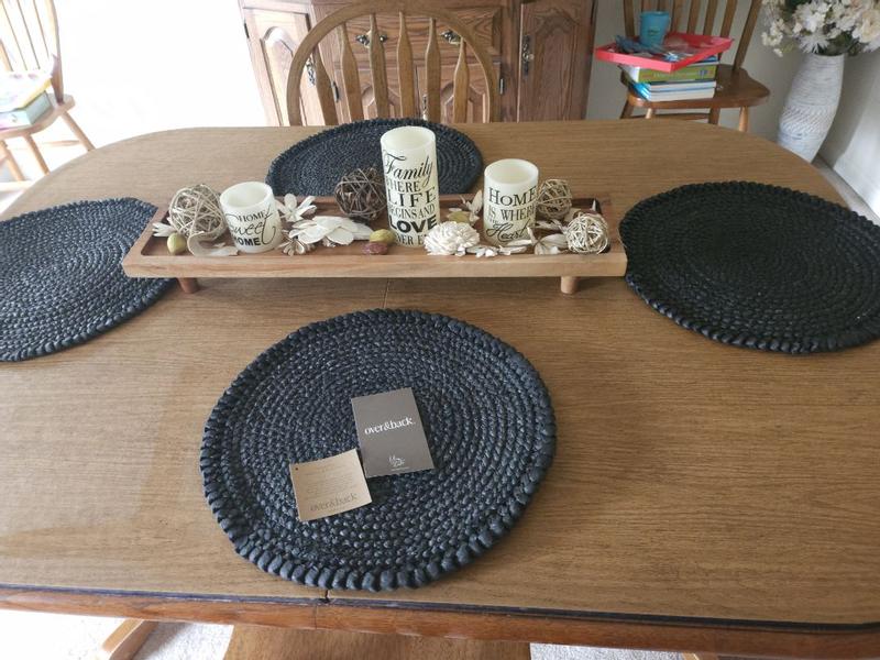 I received Over&Back set of 4 Natural Round Woven Placemats (black) in exchange for my honest opinion. I wasn't expecting anything special. Placemats are placemats, right? Wrong, when I opened the box, I was surprised to see something that I was looking for for a while now but could never find. Mats were bigger compared to store ones and as advertised made with natural fibers. I can't wait to explore more products from Over&Back.