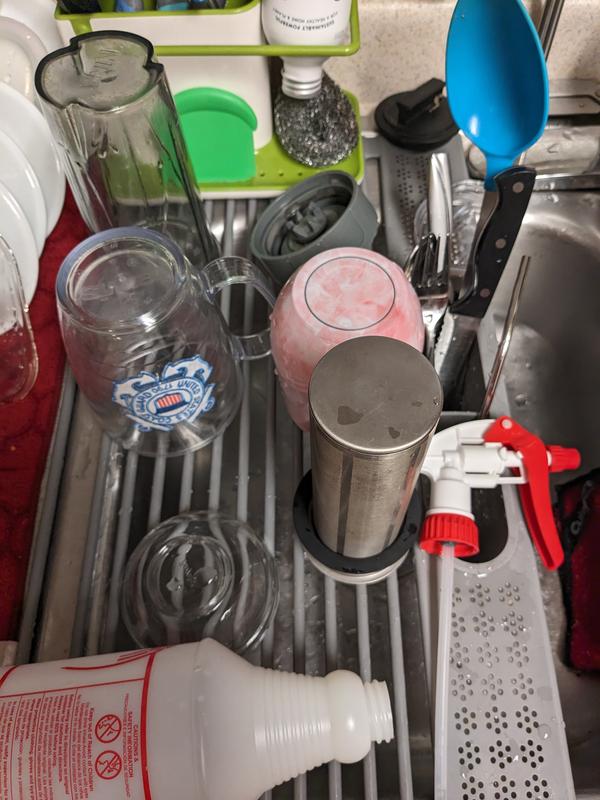 I’d been shopping for one of these to replace my ridiculous towel on the counter method. Such a cool design and easy to stack the large dishes that don’t fit in our dishwasher, as well as wooden spoons that I don’t put in the dishwasher. I love that it also rolls up and is easy to clean and store as needed