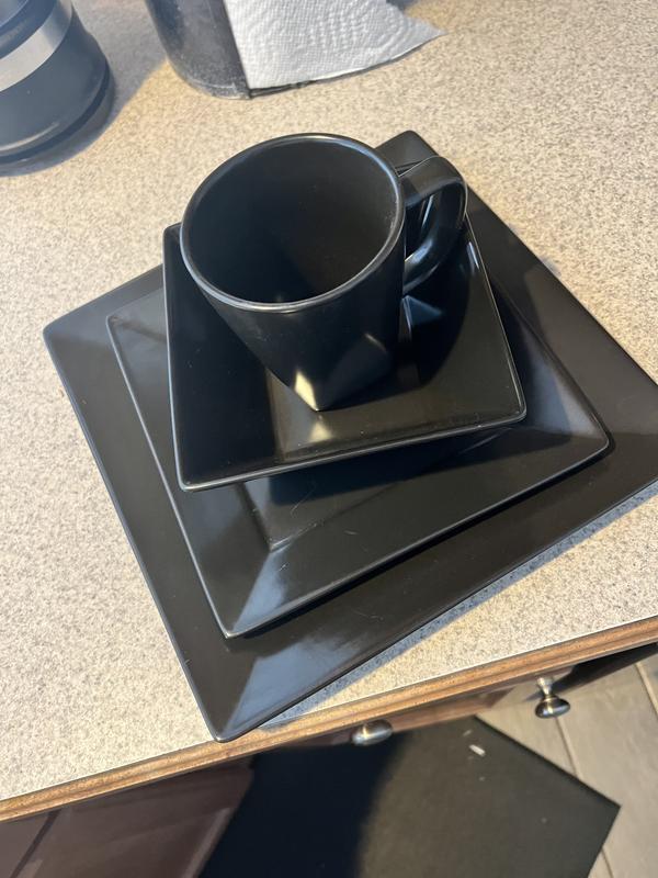 I was so excited to receive my dinnerware set. I absolutely love the square design and black color. The heaviness of each dish makes it feel durable and very well made. I would like to purchase another set to have more of the set.