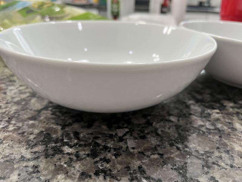 I am absolutely loving this dinnerware set. It is such a classic but also elegant look to it. Honestly I love that this set doesn't come with any mugs. I never use the mugs anyway. I will take another set of bowls over mugs anyway. The two sets of bowls are perfect in size. One set is great size for pasta, salad or soups and the other set is perfect for cereal. This is a great set. So far they seem sturdy and chip resistant. I hand wash and don't use a dishwasher so I'm unable to review how they hold up in a dishwasher.