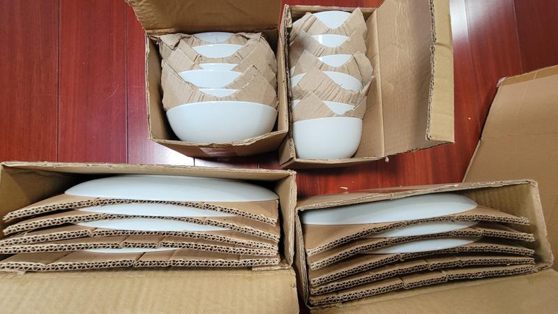 This Over And Back 24 Piece Dinnerware Set is really a nice dinnerware set. I like the classic white and simple design of the plates and bowls. I love that this set is dishwasher and microwave safe. These features are a must for me when selecting a dinnerware set. I definitely recommend them.