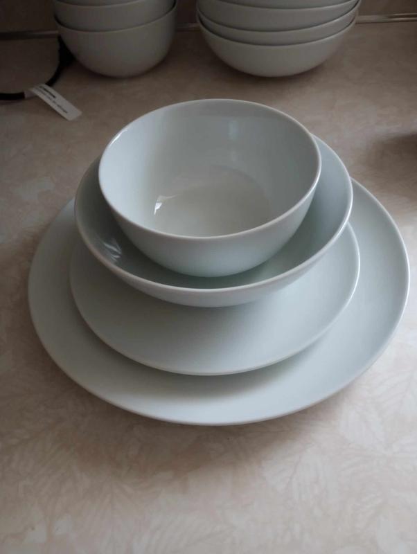 I love love love this set!! I was super excited to be able to grab a set that is just bowls and plates! I have way to many coffee cups and usually avoid purchasing "sets" because they all come with them. I like the pure white as it matched with everything. I consistently change decor and was quite happy to replace my red dishes in my newly "Blue" kitchen.