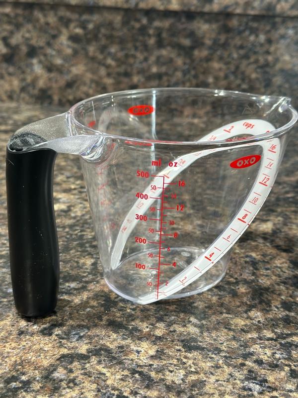 I really like this OXO measuring cup! It’s very convenient and easy to read from the top, which saves time while cooking. The handle feels comfortable to hold, and the measurements are clear. Great quality overall!