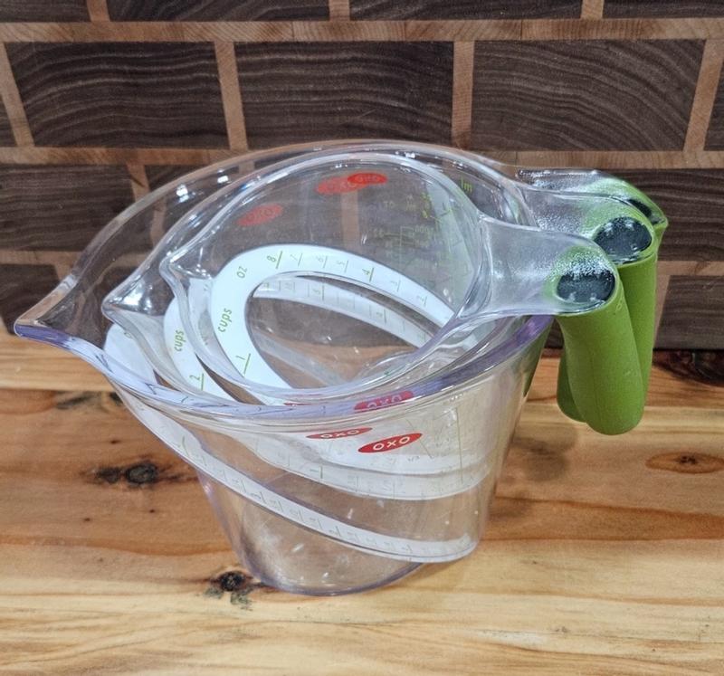 The Oxo Gg 3 Piece Angled Measuring Cup Set is dur