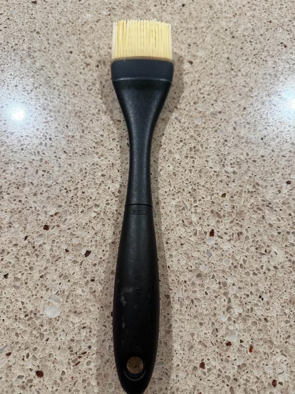 The OXO silicone brush works as expected, is heat resistant (I use it all the time to spread butter or oil in my pan before cooking). The gaps/holes in the center retain the liquid you are spreading for better distribution. After using I just clean it in the dishwasher and it comes out sparkly clean!