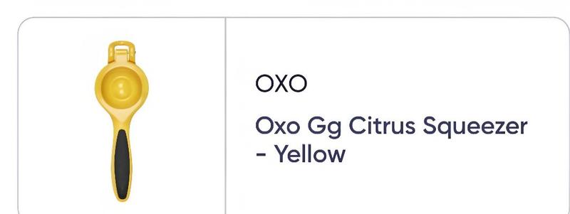 Review: The OXO Good Grips Citrus Squeezer in yellow is a sturdy and efficient kitchen tool that makes juicing lemons, limes, and other small citrus fruits quick and easy. Its ergonomic non-slip handle provides a comfortable grip, and the solid construction ensures smooth, powerful pressing with minimal effort. The bright yellow color adds a cheerful touch to the kitchen, and cleanup is simple since it’s easy to rinse or pop in the dishwasher. A practical and reliable addition for fresh juices and recipes. Summary: Comfortable, efficient citrus squeezer that makes juicing effortless.