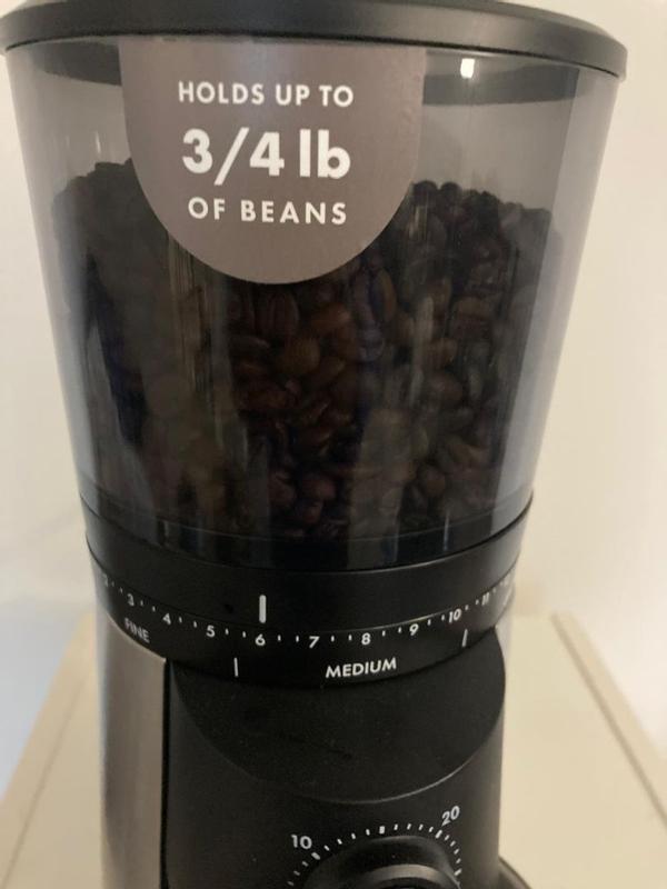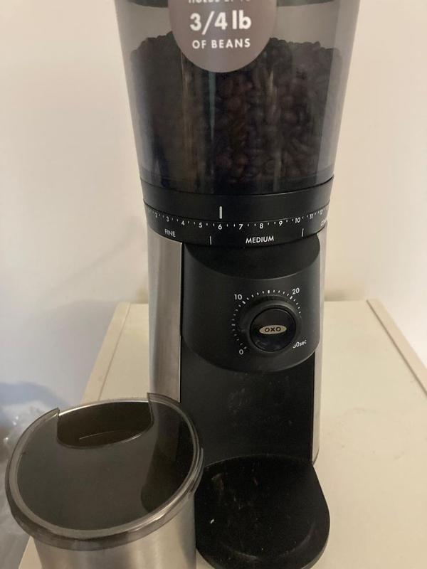 Constant problems with the grinder. Grinds coffee in big chunks no matter what setting it is on. I received a replacement but still issues. I would not recommend this grinder. Disappointing since I love my OXO Coffee Maker and was hoping this grinder would be a favorite too. Not so much.