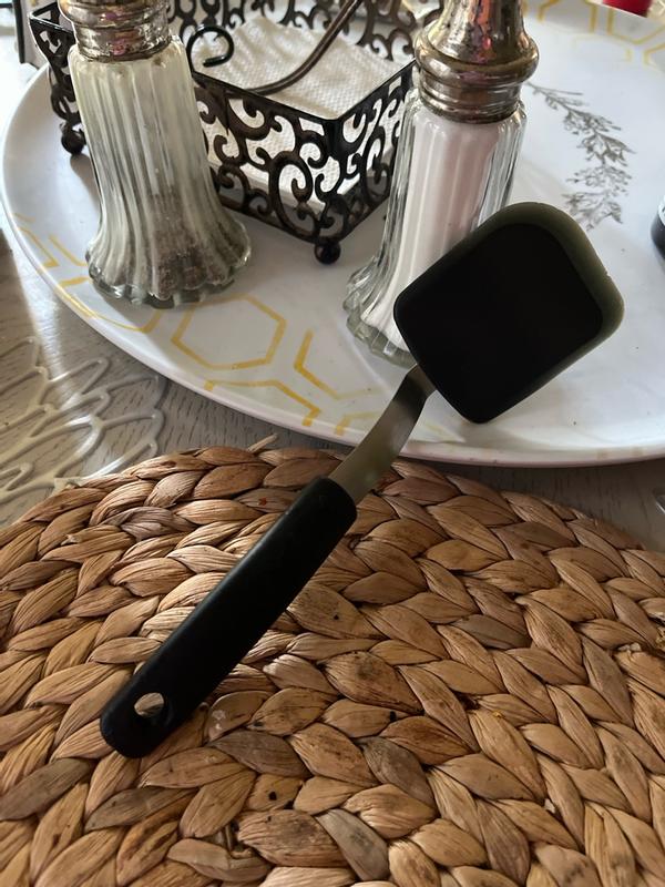 This spatula is great to use in my kitchen. I use it for so many different things. From breakfast to dessert, it's really good at turning my eggs when I'm making scrambled eggs or if I'm making an omelet. I can flip it easily. I also use it for pancakes in the morning. And I sometimes use it to scoop up my cookies off the baking sheet. Its easybtonstore with other utensils. The smooth surface makes it good for cleaning.