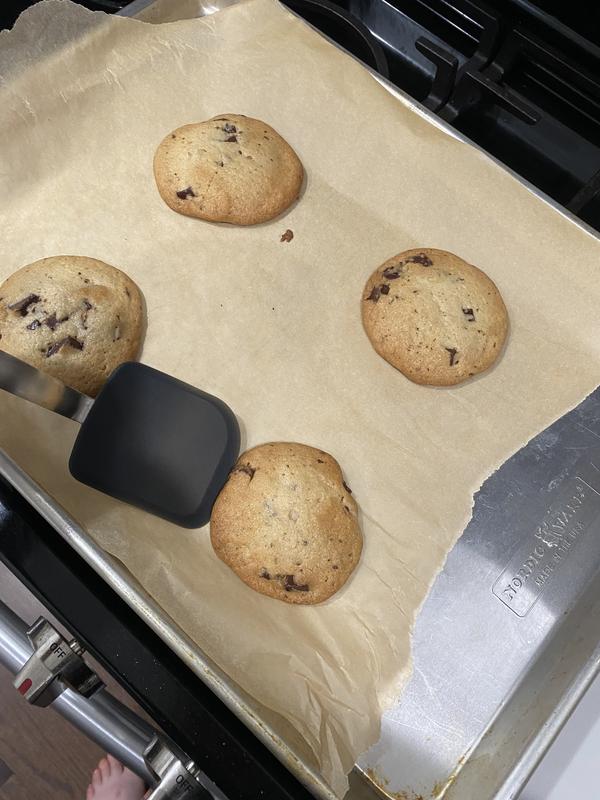 I just can't say enough good things about OXO brand spatulas! It used to be a bit of a challenge for me to find them in the market but now you can find them at any retailer and online. I love cooking various different things not only cookies with my spatula and I get them in multiple colors. I have at least three.! I love that the handle and the flipping area is both made of silicone so it doesn't get hot to my hand even if I stick it in a hot oven or a frying pan. You can find hundreds of use for this spatula and I use mine all the time. It is very sturdy and durable and I have had one for several years and it's still almost looks just as new. They are also dishwasher safe.