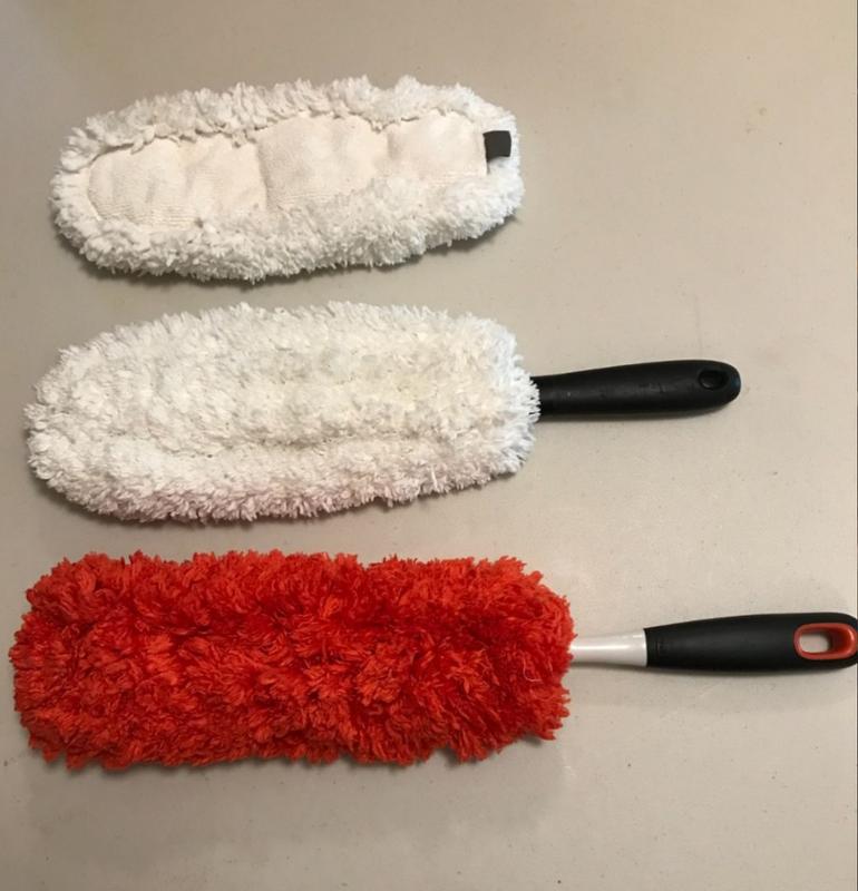 OXO microfiber under appliance duster is the perfect size and the handle is as well! So easy to clean and store. The comes off easy to clean! A must have!