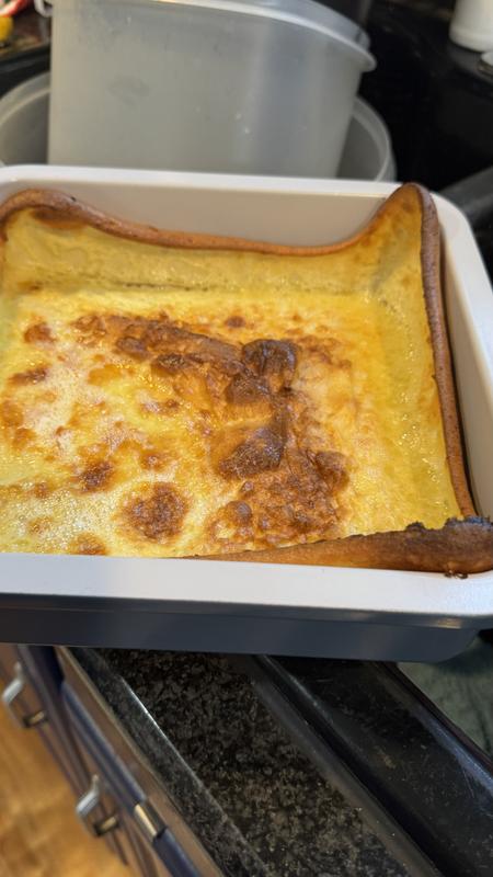 - Square-rolled edge adds structure and strength to the bakeware