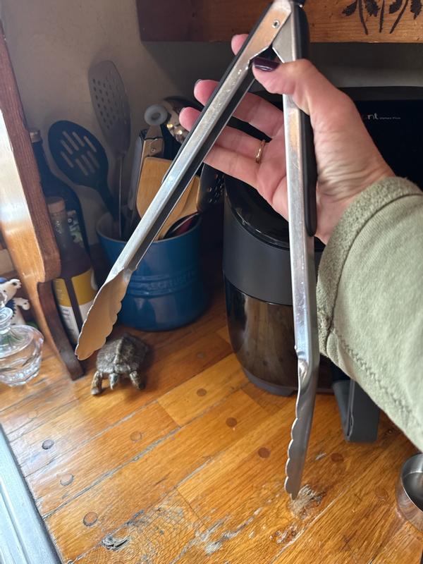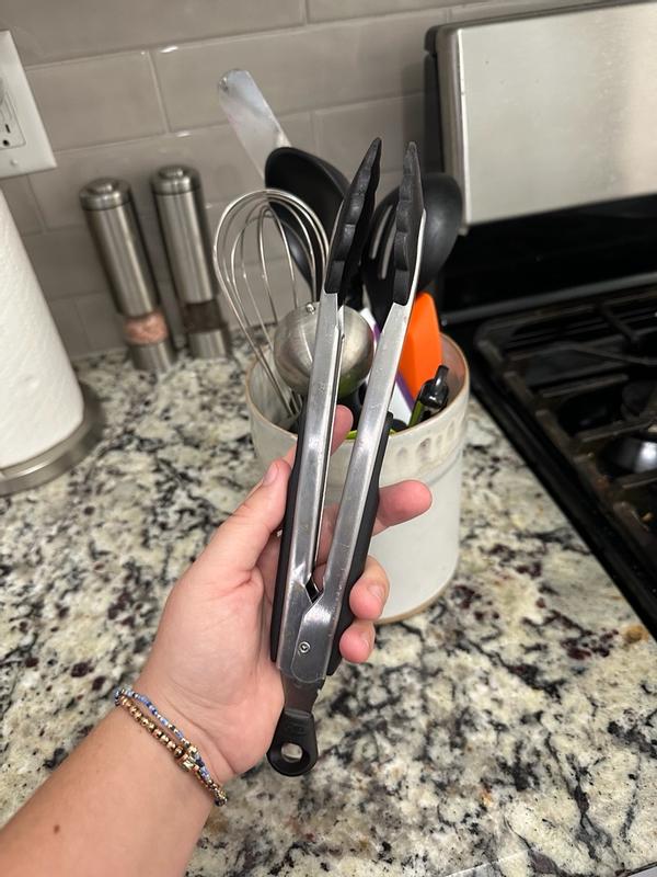 These OXO Good Grips 9-Inch Tongs are perfect! The nylon heads are gentle on my nonstick pans, and the grip feels really comfortable in my hand. They lock easily for storage and feel super sturdy. Great quality, easy to clean, and just the right size for everyday cooking!