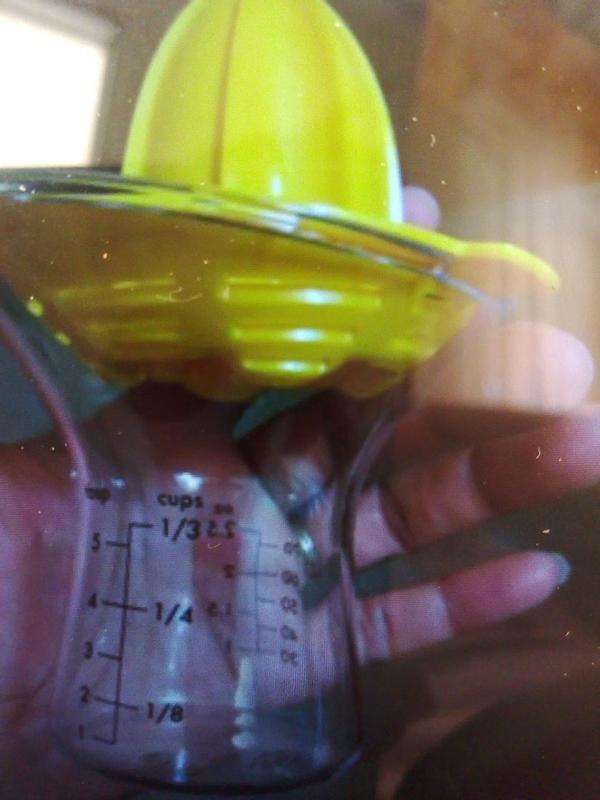 I've been looking for a reliable, easy-to-clean manual juicer for ages, and this design is fantastic. It's quickly become an indispensable tool for making everything from fresh lemonade to flavorful sauces and cocktails. The bright yellow reamer is perfectly shaped, effortlessly extracting every last drop of juice from lemons and limes without getting messy. It does an excellent job of filtering the pulp and seeds right away, leaving pure, clean juice collected in the base. It requires minimal effort, even when juicing a whole batch of fruit. The true genius of this product is the clear glass collection cup. It features clearly labeled, easy-to-read measurement markings in both cups and milliliters (up to 4 oz or 100 mL). This means I can juice exactly the amount I need for a recipe without having to dirty a separate measuring cup, which is a huge time-saver. The glass base also provides stability; it's heavy enough that it doesn't wobble or tip when you're pressing down hard on the fruit. Not only is it highly functional, but the two-piece design separates easily for thorough cleaning. If you do any amount of cooking, baking, or cocktail-making that requires fresh citrus, stop using clunky alternatives. This juicer is a compact, functional, and visually appealing addition to any countertop. Highly recommend!