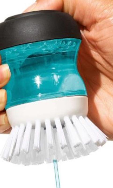 Handy little dish buddy! It’s a must have in my household, it allows you to put soap in the top and push the lid while scrubbing to disperse the right amount of soap! Works well on the tough jobs and is even better when storing, all you have to do is refill the soap used during the dish washing session.
