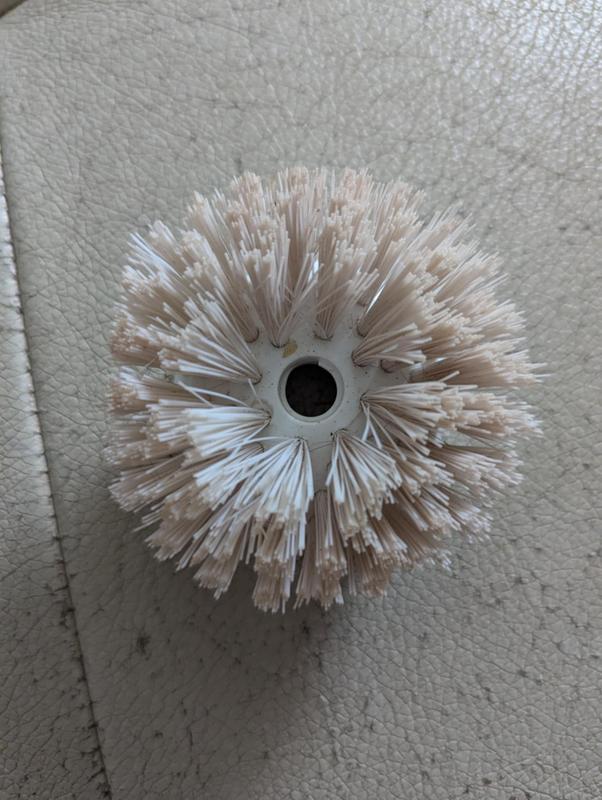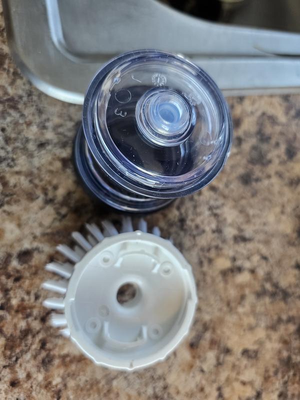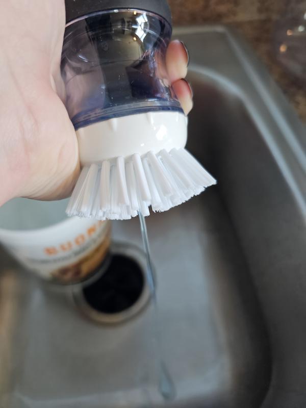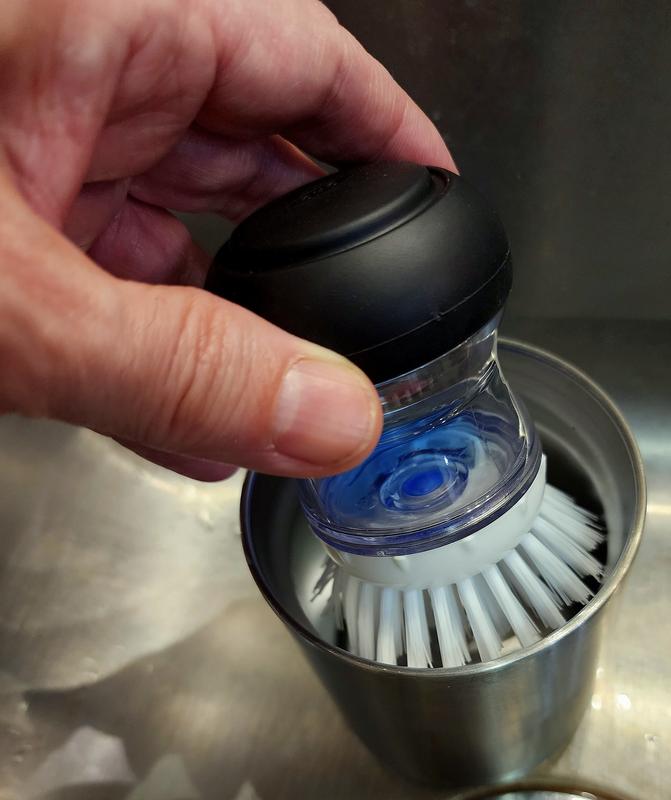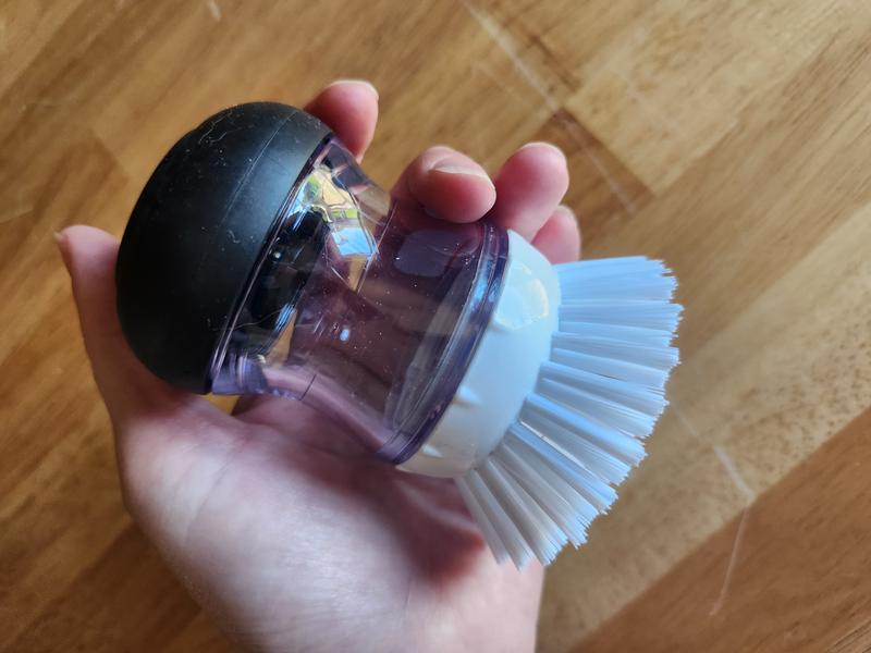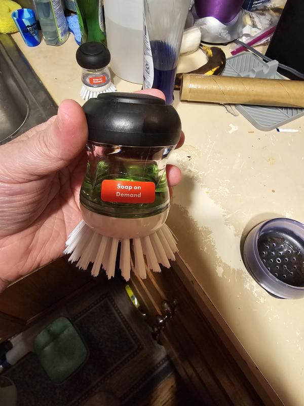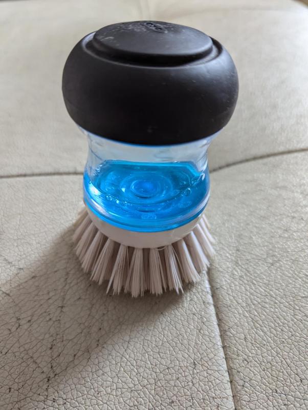 Our new soap dispensing palm brush is just what we needed. It does a particularly good job with cleaning the pots and pans we do not wash in the dish washer. We can think of nothing better.