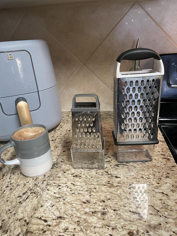 Love this grater. My favorite part is the container that attaches to the bottom, for ease of packaging and transport. No more dirtying multiple dishes to shred cheese. It's the perfect all in one.