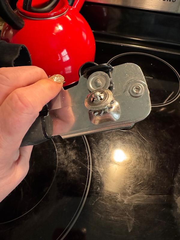 I actually received this can opener in replacement of the one I had that was malfunctioning. I am very appreciative of axo, being so generous and completely replacing my original can opener. However, I must say the new 1 has done the same thing, the other one did, which is when I complete going around the can. One time the unit does not release from the can lid, so I reverse it one turn and then take it off. At that point there's a small piece of metal sticking out. This is the same thing that was happening with my original can opener. I may be doing something wrong, but I am pretty sure the directions suggest doing that reverse maneuver.