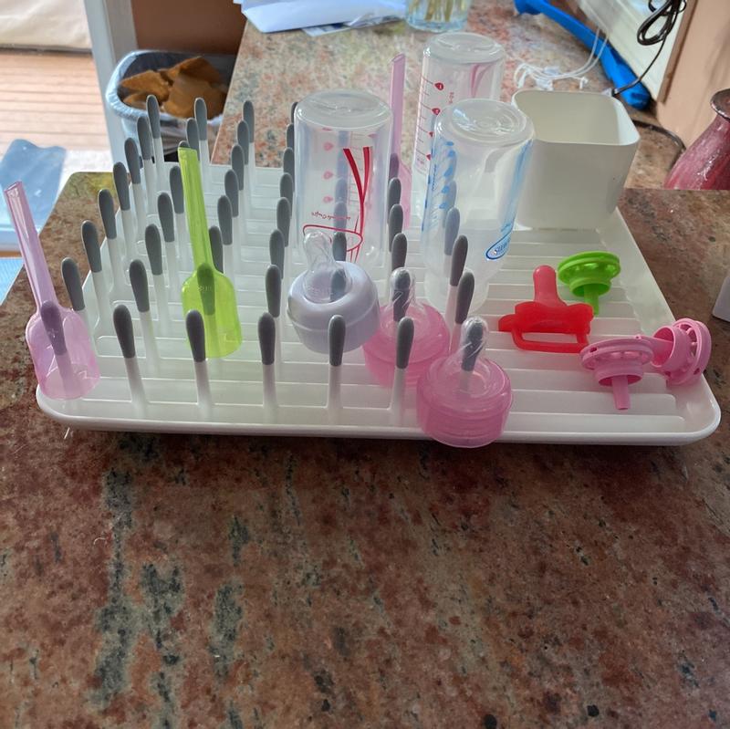 I bought this bottle drying rack for a friend for her baby shower. Thought it would be great since it could hold up to 8 bottles, nipples, straws, and medicine droppers. It is convenient for a new mom to be to have this I think.