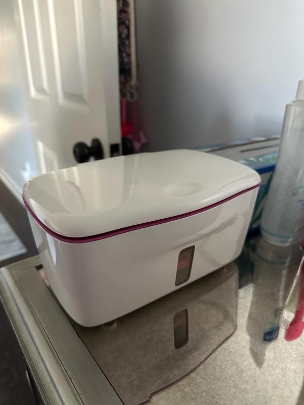 I was gifted this and honestly thought I didn’t need it, but now I use it every time I leave the house. It’s so much easier than trying to pull wipes from a crunchy, ripping bag. It’s easy to refill, snaps shut securely, and has a handy loop to hang on your bag or stroller. You just snap it open, add your wipes, and snap it closed, super simple.
