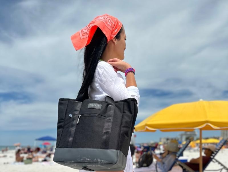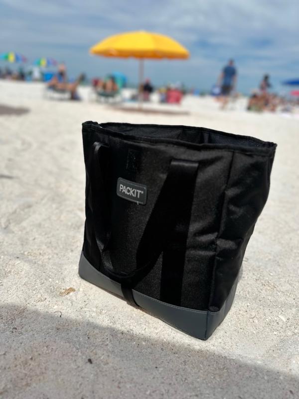 Really nicely made tote and much less bulky than a traditional hard cooler. This is great for picnics and going to the beach. I like how the built in cooling lining eliminates the need to add ice packs—so convenient. I just wish the handles were made of slightly better material.