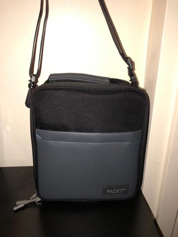 I've used Packit products before and they haven't let me down in the past but this lunch box might be my favorite thing I've used. It's made well with good zips and a nice strap for carrying to work or on taking outdoors. It's a decent size and could fit several drinks and snacks or a decent sized meal, but the shape isn't too awkward and would fit well in lockers or even a center console of a car for easy storage until mealtime. It has a front pocket for storing things like silverware or napkins and a side pocket for a drink or water bottle. The gel lining inside the lunch box stays frozen for a long time indoors or on a cooler day but even once it's thawed it will still keep things inside cool for quite a while. The lining is very easy to wipe clean in case of spills which I so appreciate. This is a fantastic lunch box and I have no complaints!