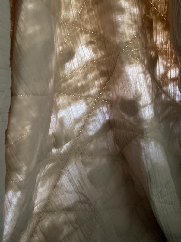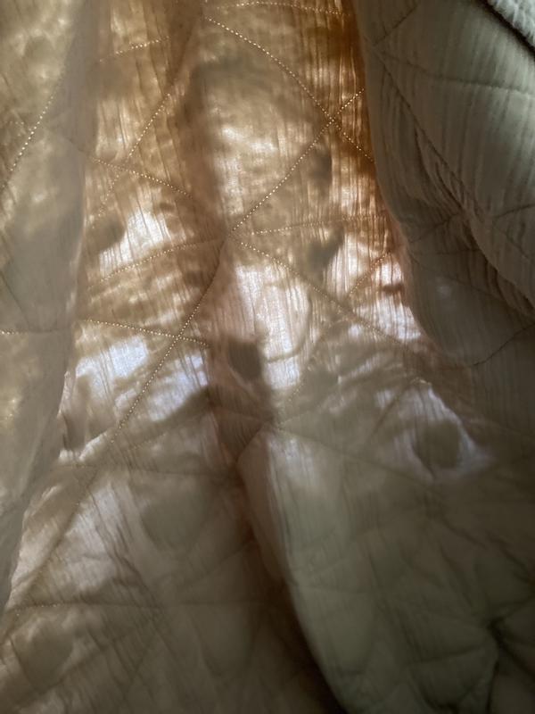 This quilt is very nice and thick. It’s not the softest thing but it’s still soft enough. I haven’t washed it yet so I can’t comment on how it will turn out. But it’s a pretty white and looks nice in my room.