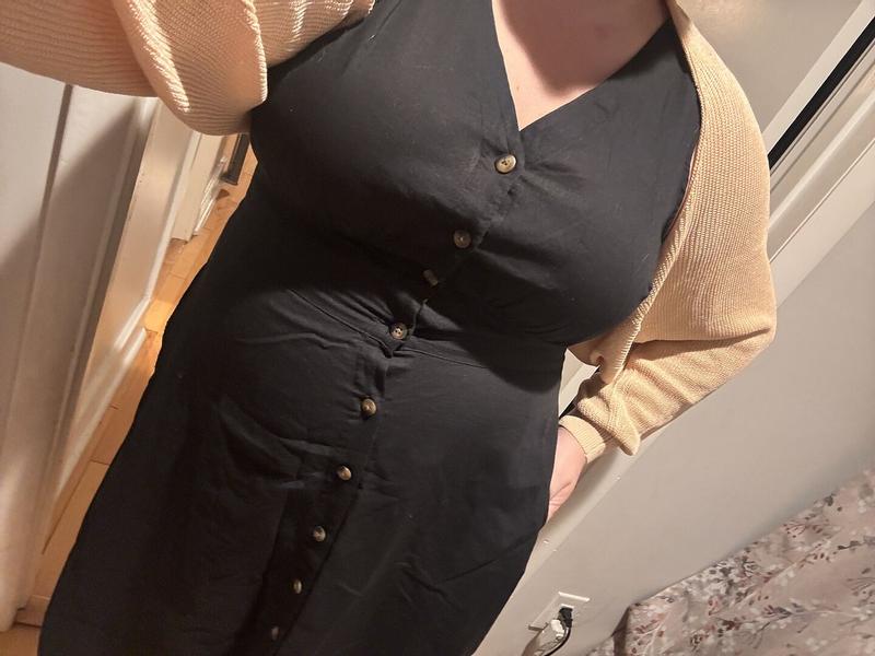 Love this dress so much! Its so versatile and a year-round staple for me—wear it with a sweater over or turtleneck under and booties in the winter and sandals in the summer. I did have to get the top tailored b/c I have a 1-2 size difference between my bust and my hips (XL-1X on top and 2X-3X on bottom). It fits my hips perfectly tho with no gaping or pulling and that's most important to me.