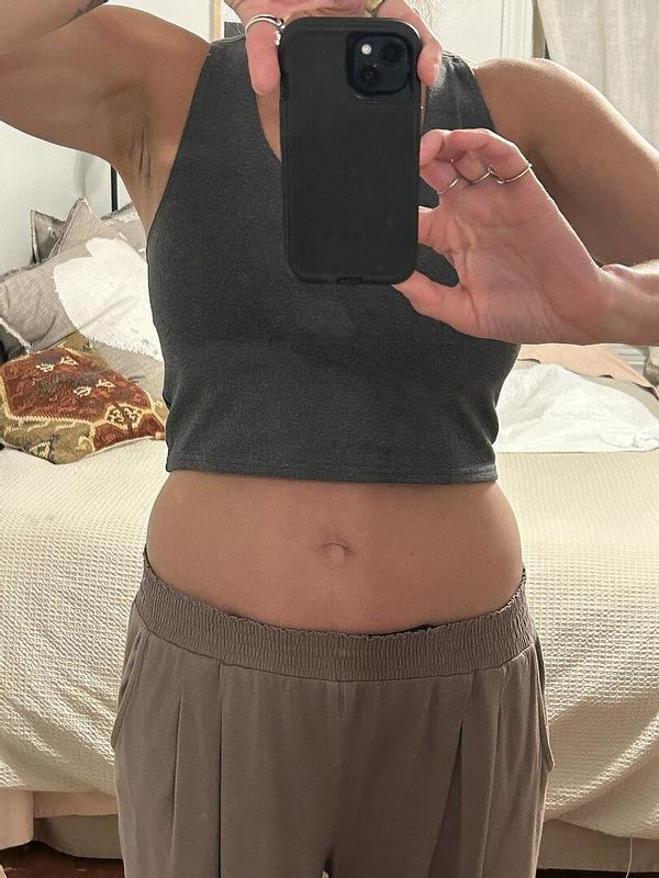 I usually wear a size Small but wanted a slimmer fit for this top, so I ordered an XS — and it fits perfectly. I’m a 34C and can wear it with or without a bra. Without a bra, it gives a more natural look; with a bra, there’s a bit more lift. The organic cotton material feels amazing on my skin — soft, breathable, and not synthetic, which I really appreciate. The crop length is slightly shorter but looks exactly like the photos. It’s perfect for yoga, Pilates, or just casual everyday wear. I got the black one, and it looks super stylish with my black leggings.