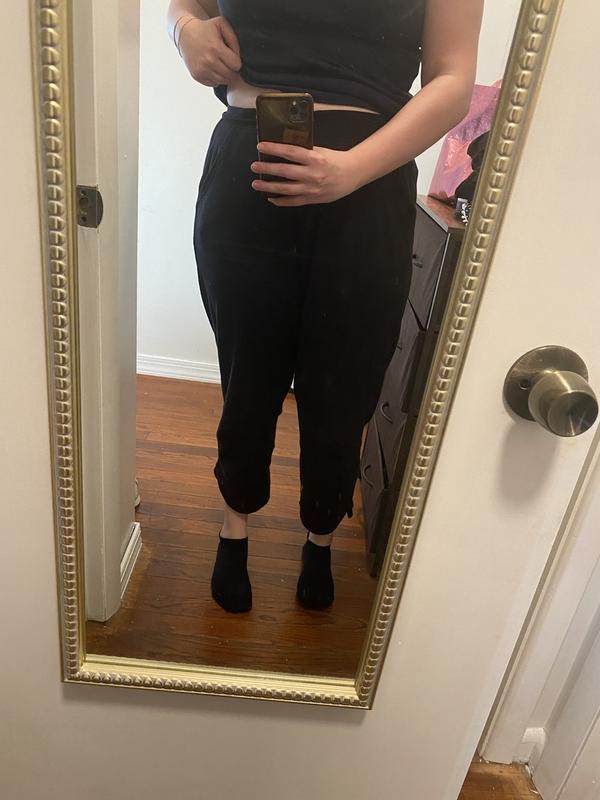 These pants are so soft and easy to wear. I lounge in them at home but they're also stylish enough to wear out. Usually pants are too long for me (I'm 5'4") but the hem on these goes above my ankle, which I love!