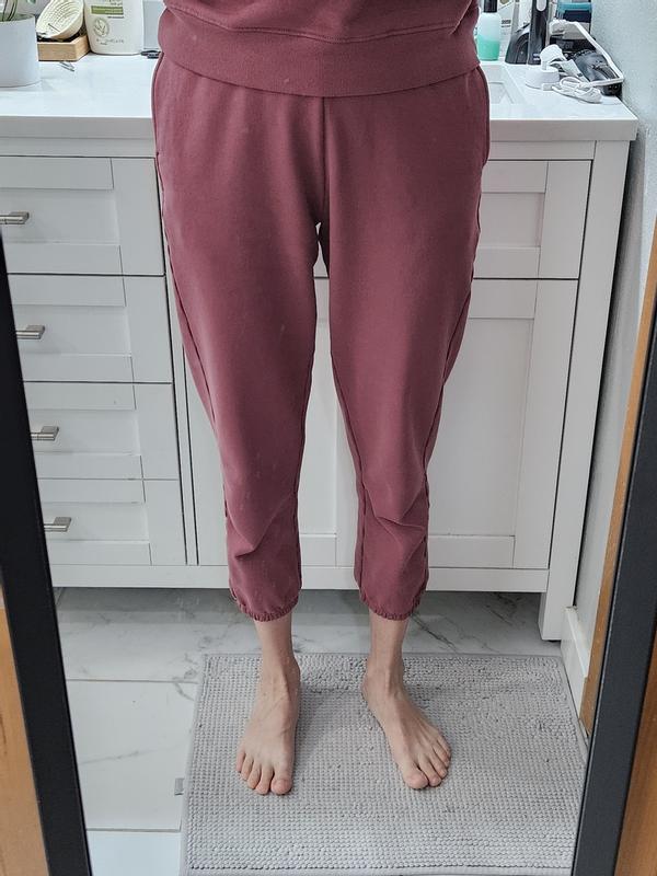 I regularly wear these sweatpants around the house or over my tennis leggings/shorts when warming up. They are soft and comfy with pockets, which is a must. They do come up but higher up the waist and I have had a pair slightly shrink in the dryer, so just something to consider. I have a black and a white pair.