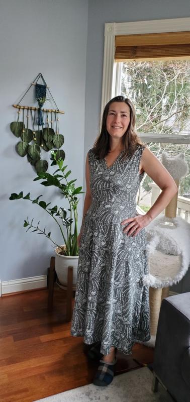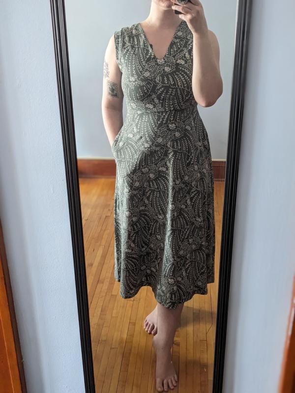 Beautiful pattern, great fit, and it has pockets! Such a flattering dress! However, it has a bad odor. I hope I can get a fresh smelling one.