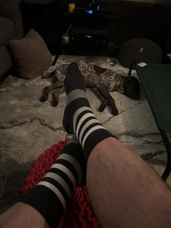 Gave 5 stars for good reason. I like the Super Fit boxers a lot so I figured I'd spend a weeks allowance on some socks. I decided on the crew style. These socks are fantastic. I have to use a helper for my left foot so I need a bit of stretch. I got it. I need cushion, walking in the house mostly. The cushion is there. I need "doesn't fall down" but not tight. It's there as well. Perfect 👌. I would go on, but there's a limit on characters. I know you're going to like 'em as well as I do.