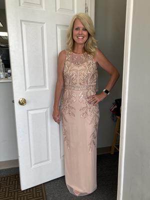 After trying on over a dozen dresses, this was the one I decided on for my mother of the bride dress. Everything about it was perfect. I did not even need to alter it one bit; it fit me perfectly (5’4 130lbs). I got so many compliments! It is such a light dress it was comfortable to wear all evening and I got to dance the night away! I highly recommend.