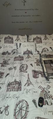 Horrible cheap materials washed one time hole in the pillow case comforter lumpy would not buy again