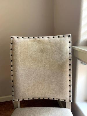 I bought the chairs online, a bit skeptical about buying furniture online but it turned out to be a beautiful chairs, looked exactly as the online pictures, the quality met my expectation, well made chairs, upholstery fabric looked high end, nail heads were nicely applied and evenly spaced. They arrived on time without any damage. The only complain I have is the shipping, it was expensive compare to other furniture store, I wish Macy offers free shipping or lower the rate. Overall, I'm very happy with the purchase and would recommend this product.